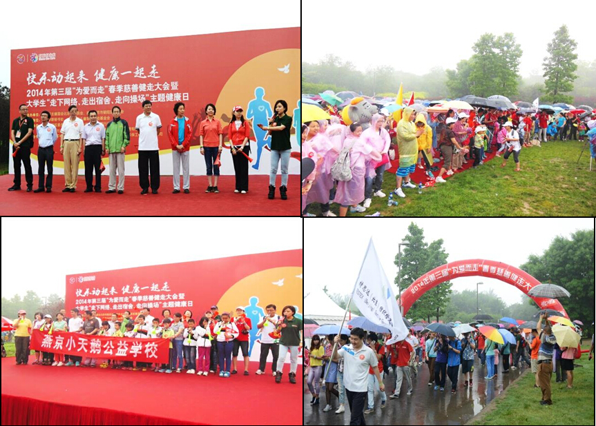 ,雨中的北京奥林匹克森林公园充满了快乐的气氛,来自亚投网登录平台入口官网、可口可乐、康菲石油等50余家知名企业和20所高校的5000多名志愿者在北京奥林匹克森林公园,共同冒雨参加了2014年第三届“为爱而走”春季慈善健走大会暨大学生“走下网络、走出宿舍、走向操场”主题健康日活动。活动旨在以行走的方式,传播和推广健康生活理念,为改善打工子弟学校学生的学习和生活条件募集善款。