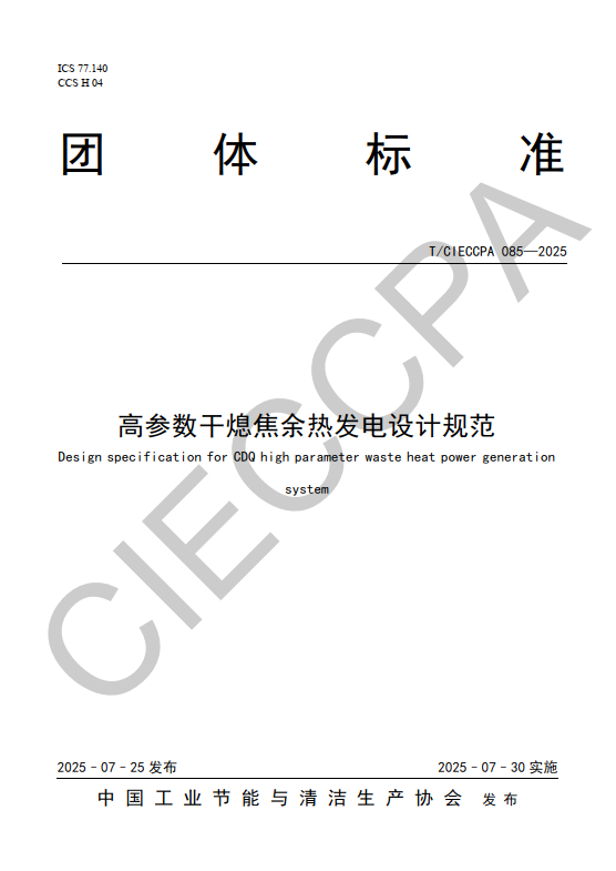在"十四五"规划收官与"双碳"战略纵深推进的2025年关键节点,我司作为核心起草单位编制团体标准《高参数干熄焦余热发电设计规范》(T/CIECCPA 085-2025),已于2025年7月30日正式实施。这项标准凝聚了我司二十余年在焦化节能领域的技术积淀。